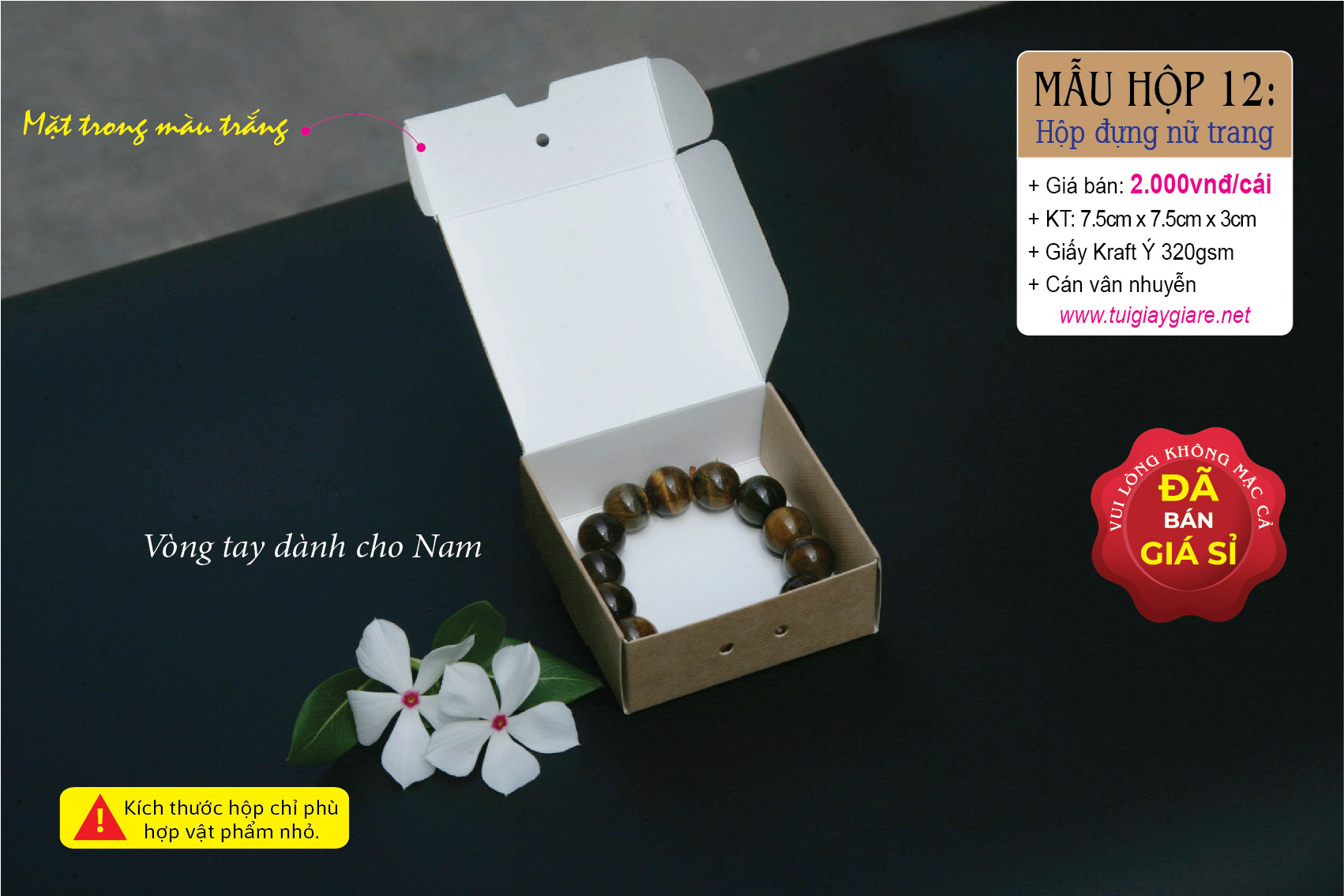 + Chất liệu: giấy Kraft Ý 320gsm (rất dày, cứng cáp, mặt trong màu trắng)