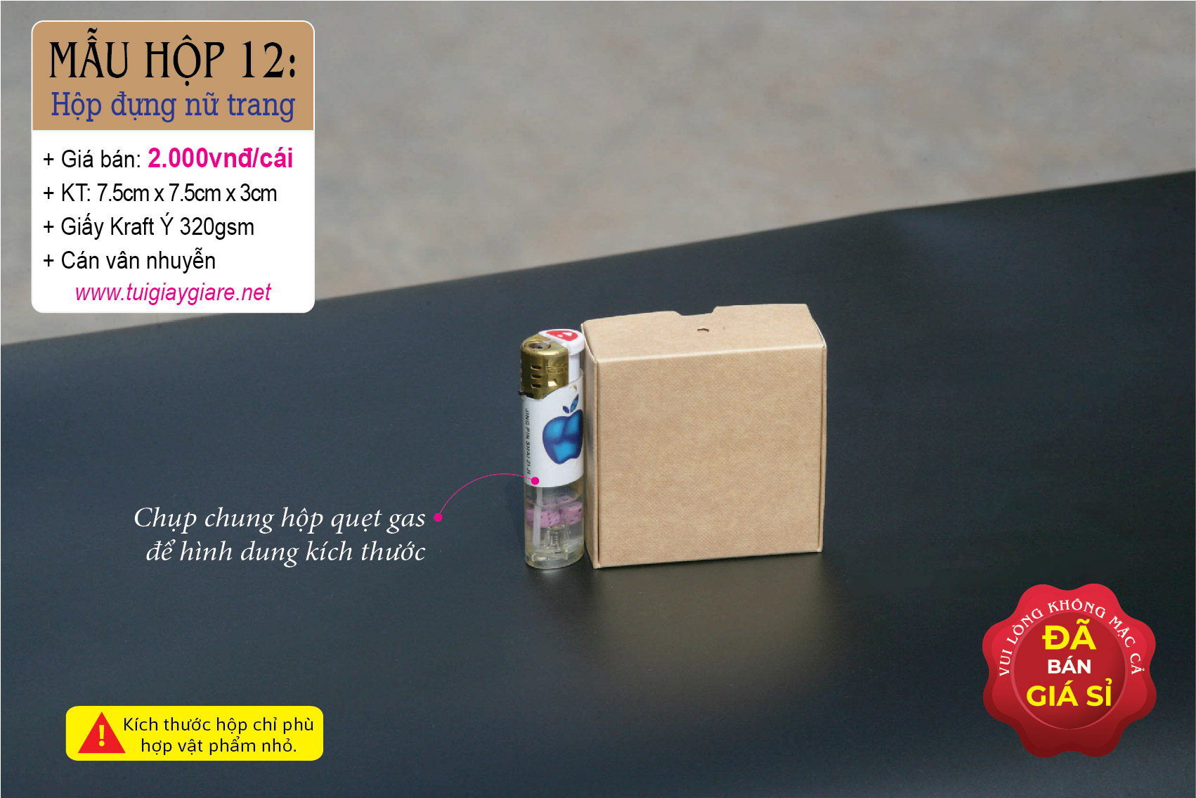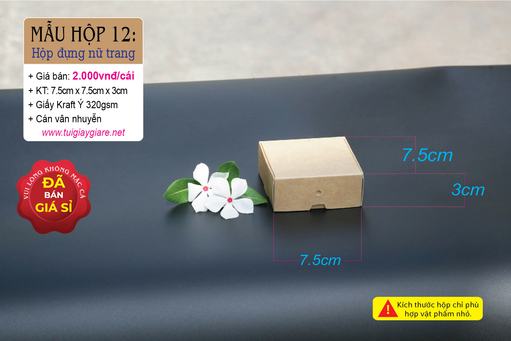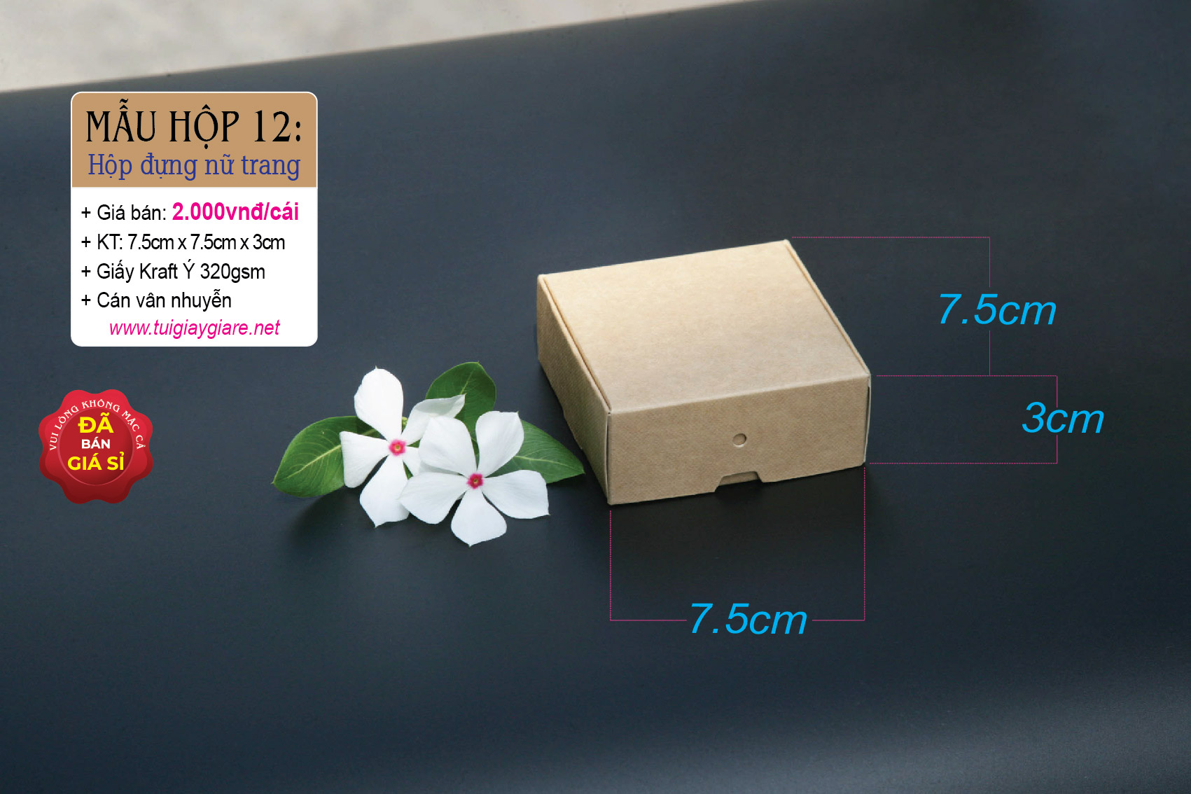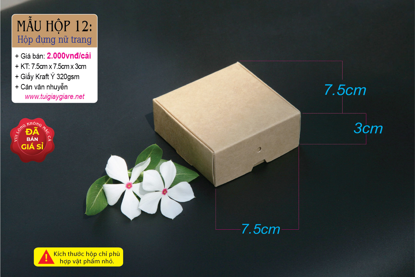 + Kích thước: 7,5cm x 7,5cm x 3cm