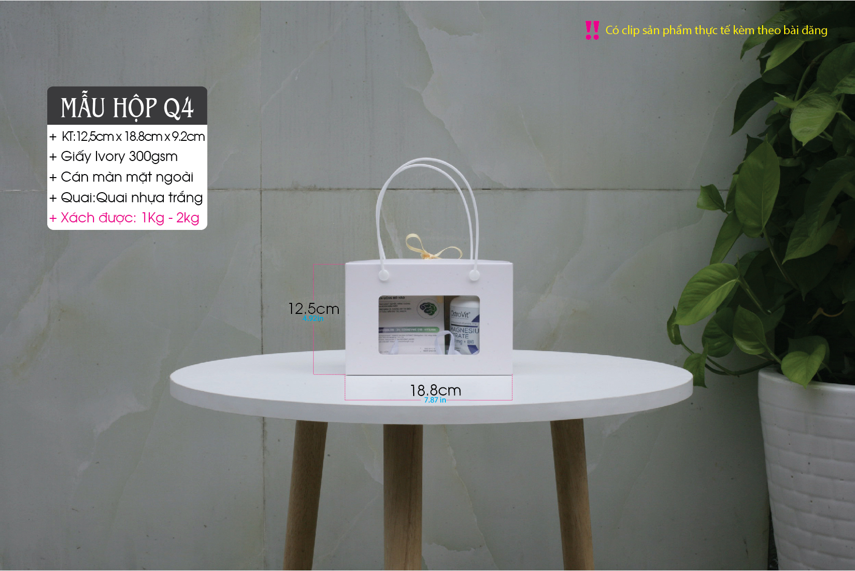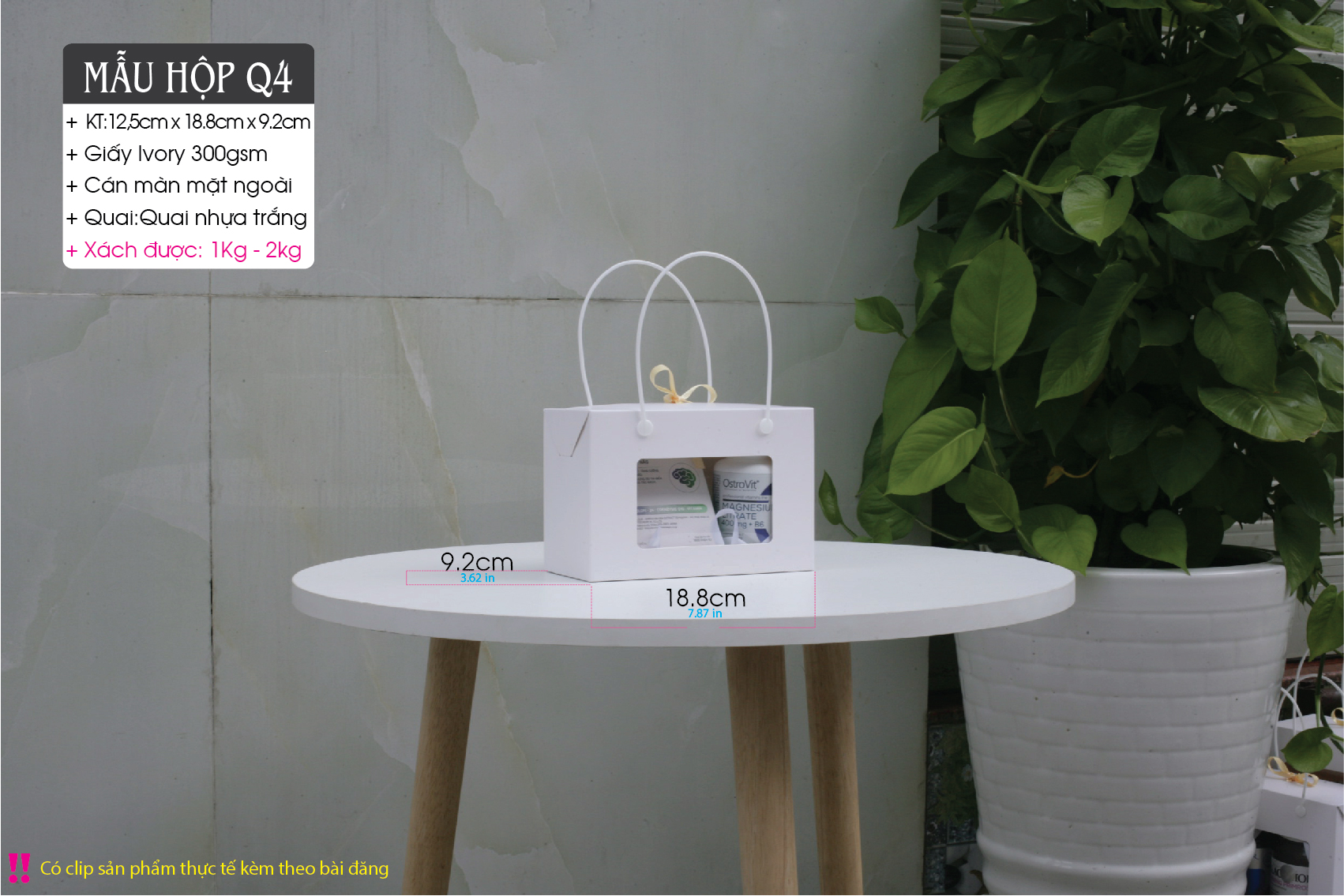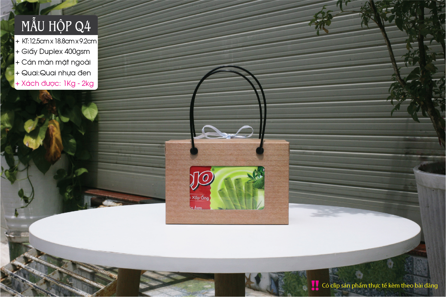 + Quai xách nhựa (rất chắc chắn) – Phiên bản kraft sẽ dùng quai nhựa đen & Phiên bản trắng sẽ dùng quai nhựa trắng