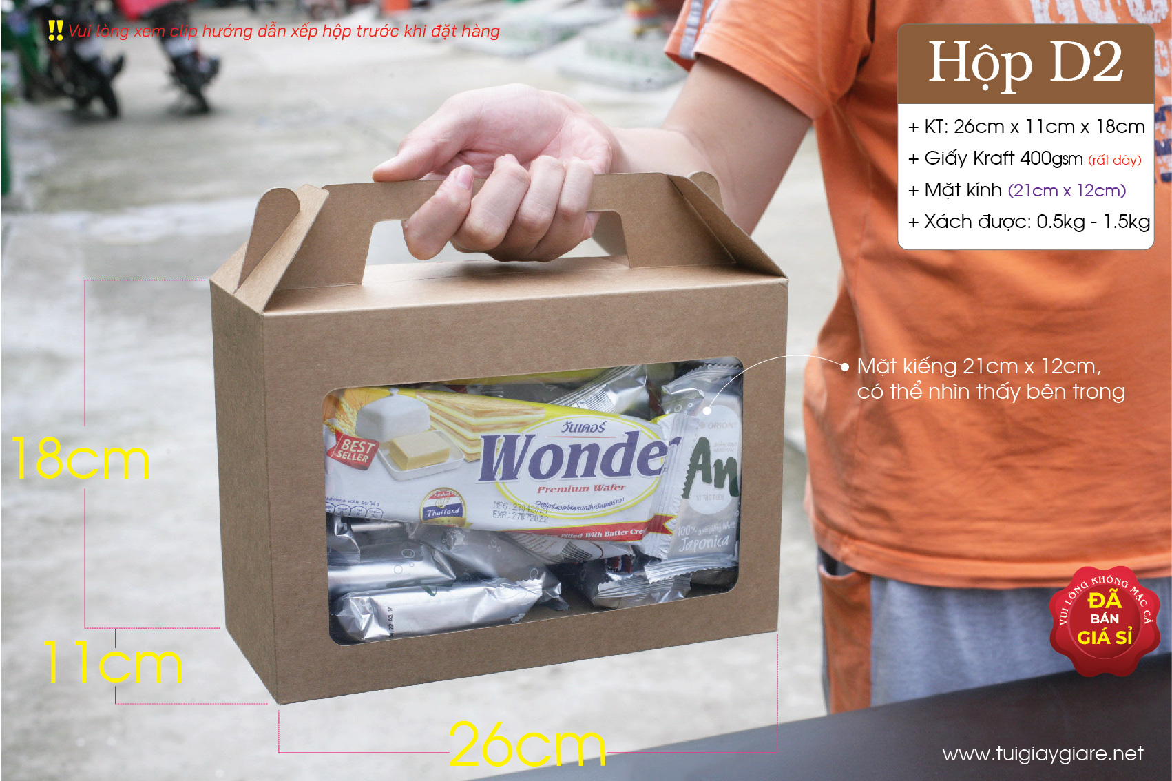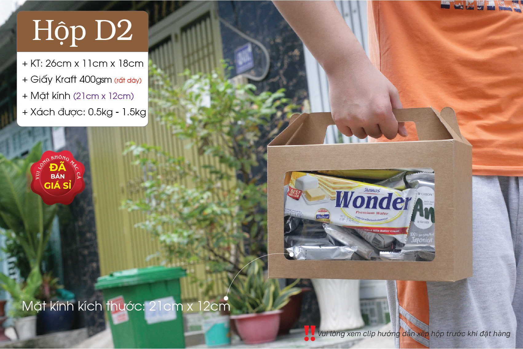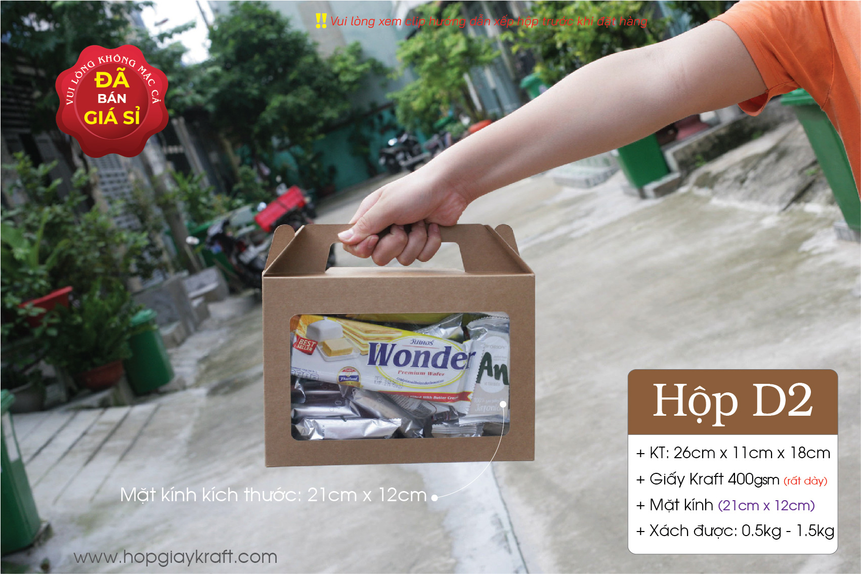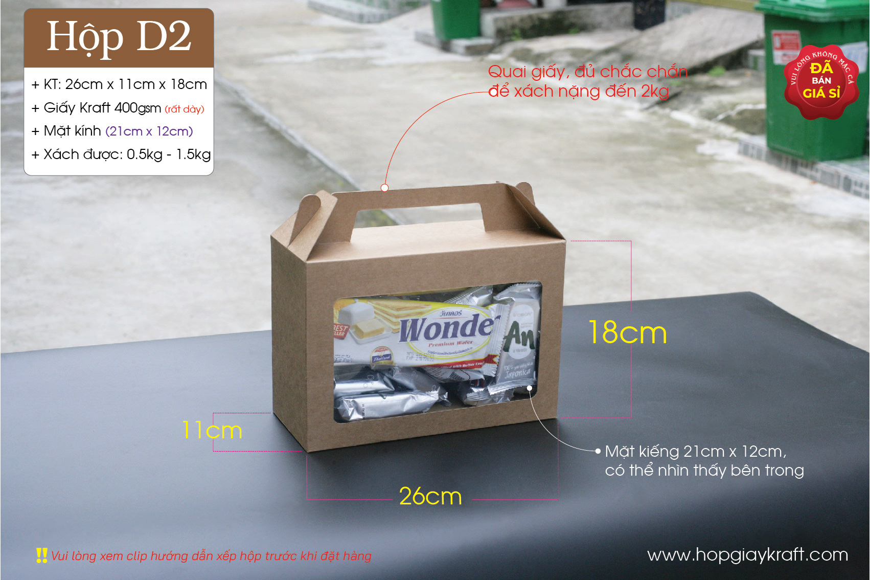 Hộp giấy kraft D2 – đựng hàng thực phẩm – kraft paper box with clear window