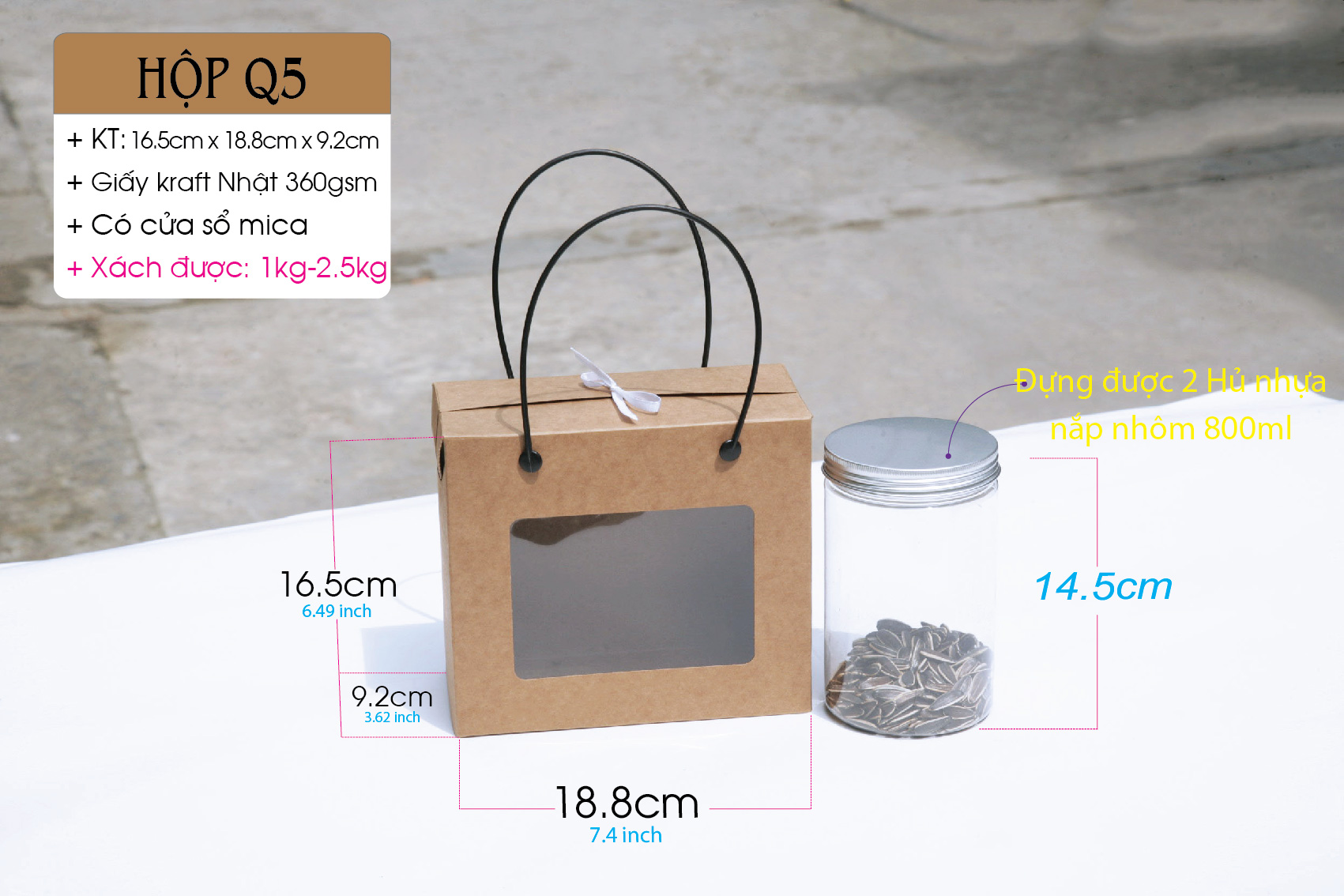 *** Dùng đựng hộp thực phẩm, khô mực, khô heo, khô gà, hạt điều, đậu phộng; Đựng được 2 hủ nhựa nắp nhôm 800ml hoặc 2 hủ nhựa vuông 1kg, sản phẩm có kích thước phù hợp. Hộp giấy thực phẩm