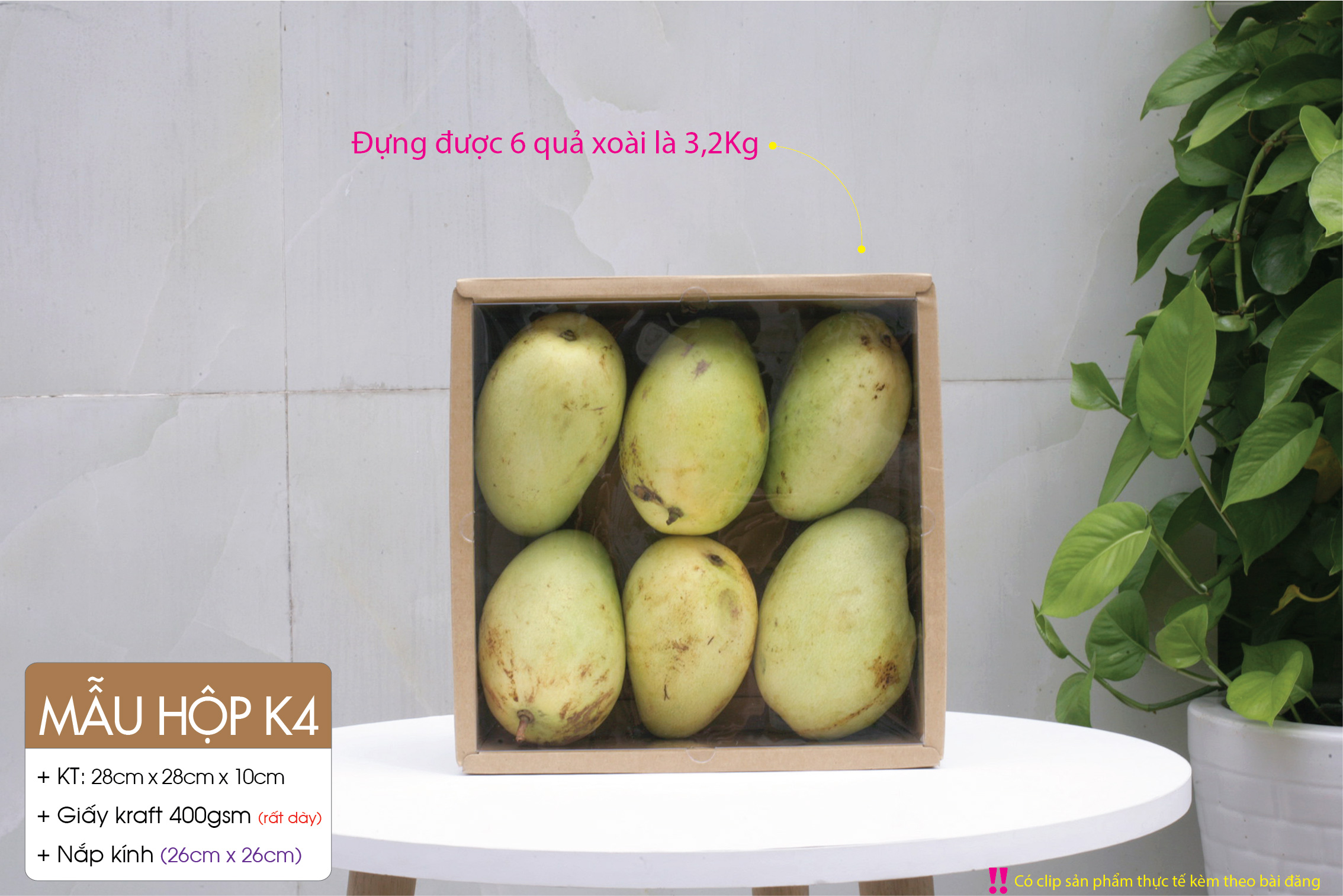 Khay đựng trái cây – Với chất liệu giấy carton và có phần nắp làm bằng nhựa trong suốt – Carton paper fruit basket with a clear plastic lid