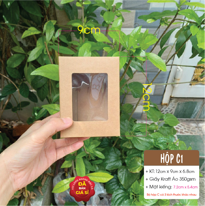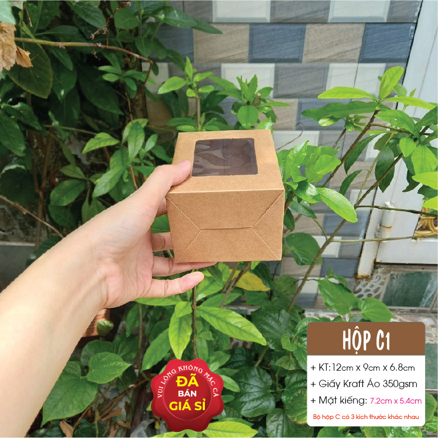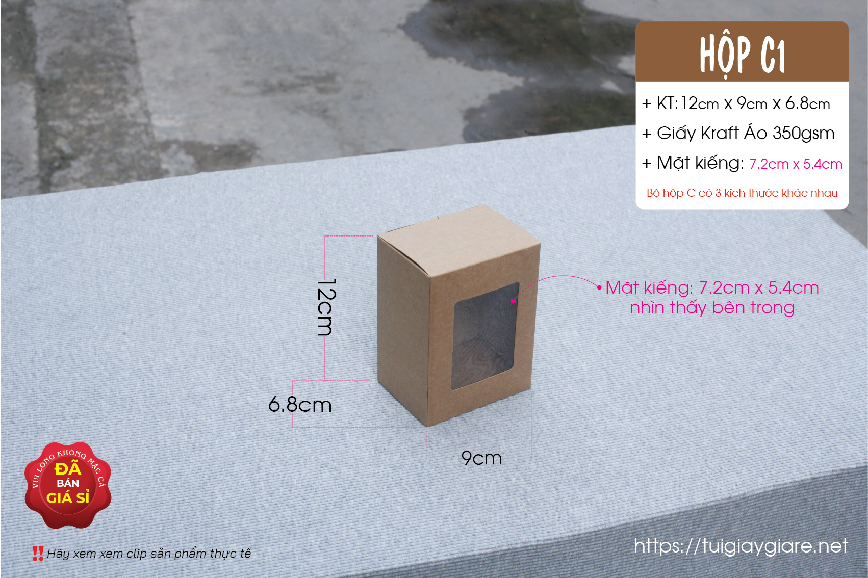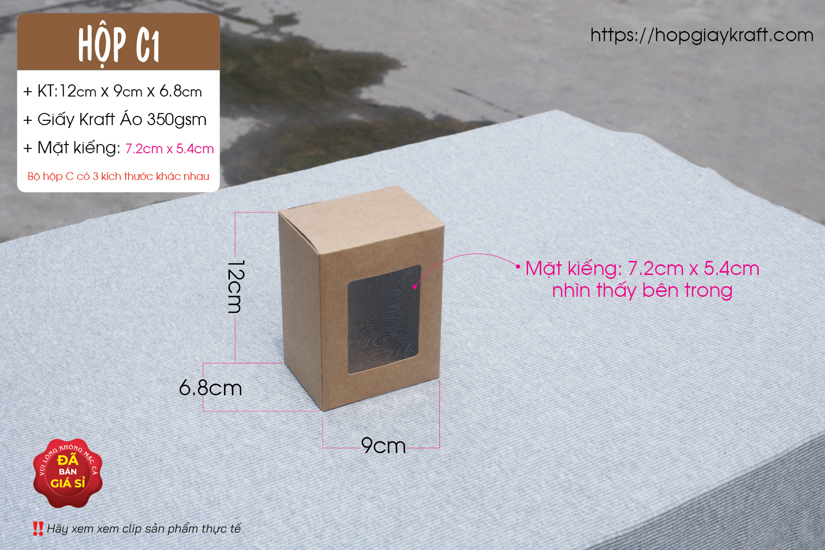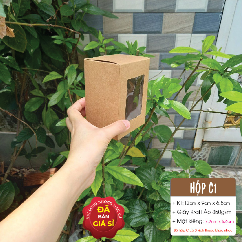 Hộp giấy kraft nâu C1 – Brown kraft boxes C1 – có mặt kiếng pvc (Bộ hộp C gồm 3 kích thước từ nhỏ đến lớn, từ C1, C2 đến C3)