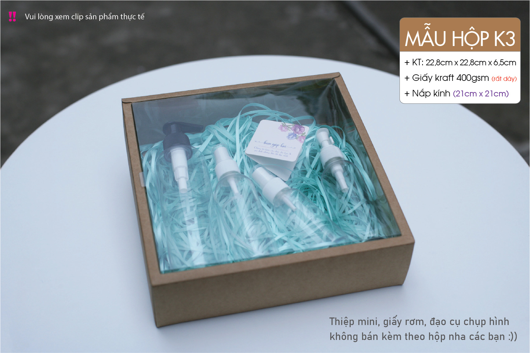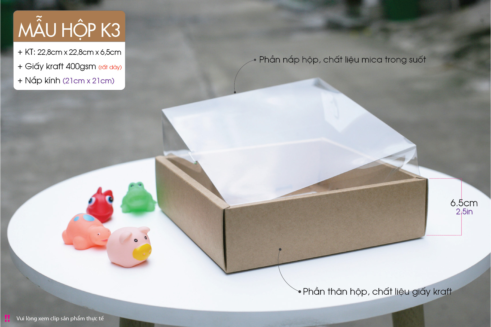 Hộp nắp mica giấy kraft – Kraft paper box with lid made from transparent material