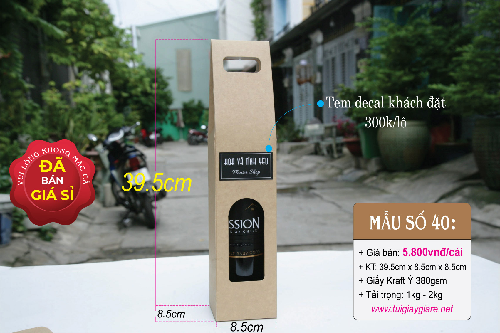 Túi giấy đựng được 1 chai rượu vang, chai nước ép trái cây 750ml tiêu chuẩn, hoặc chai lọ có kích thước phù hợp… dùng làm quà quà tặng dịp Tết 2021.