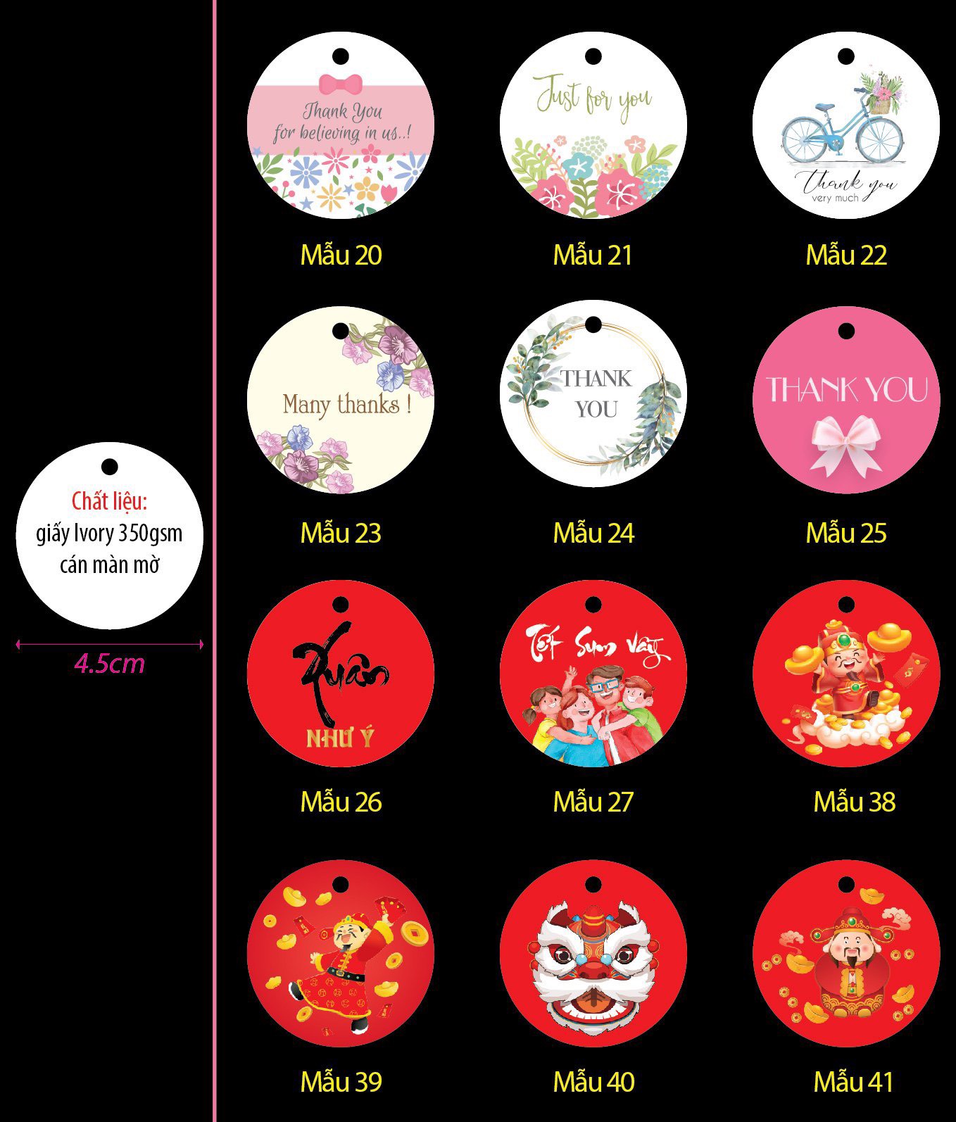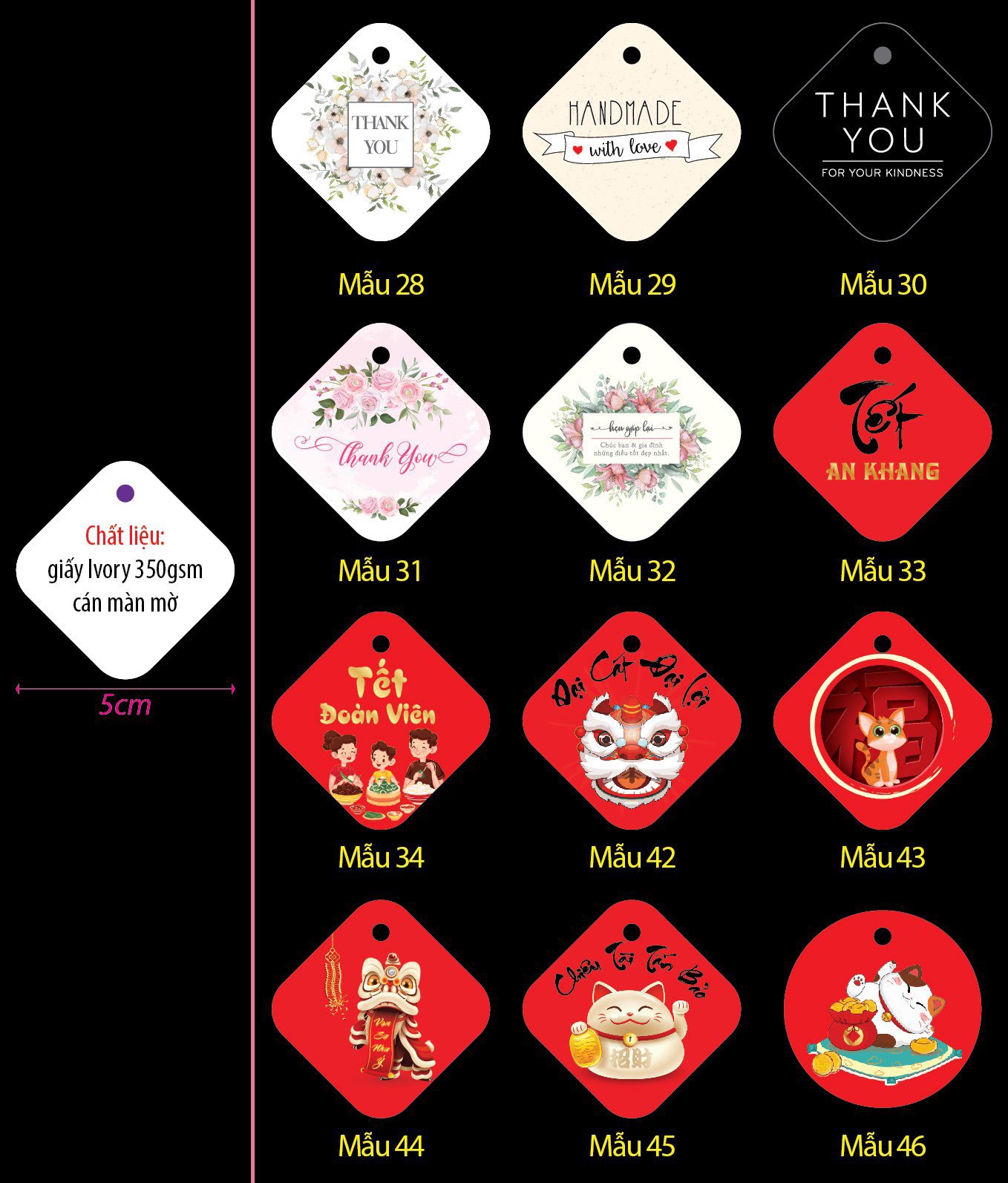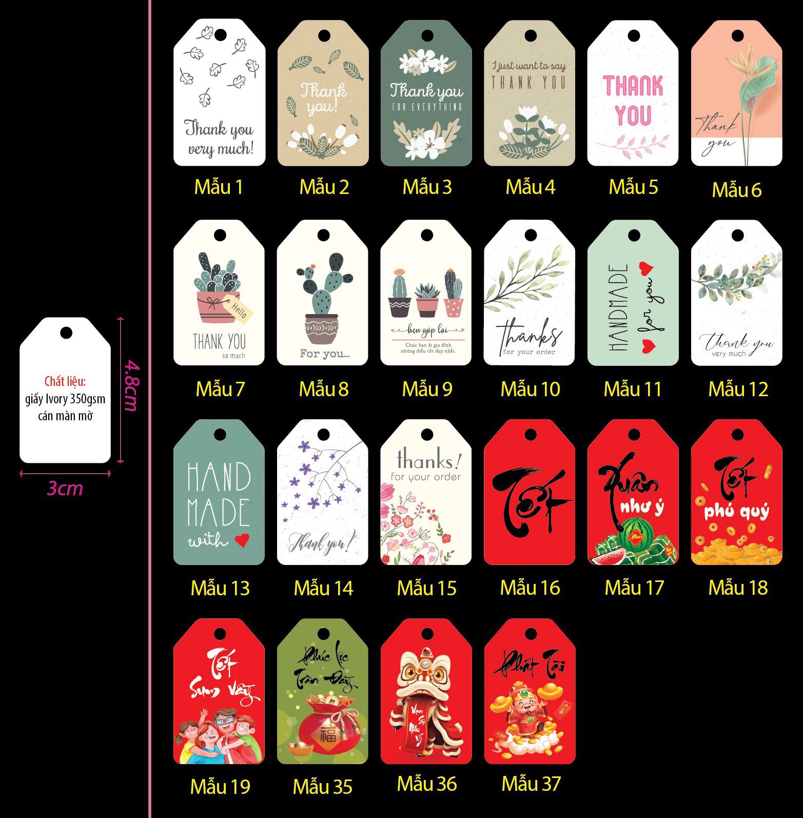 Chất liệu: Giấy Ivory 350gsm (dày & cứng cáp).