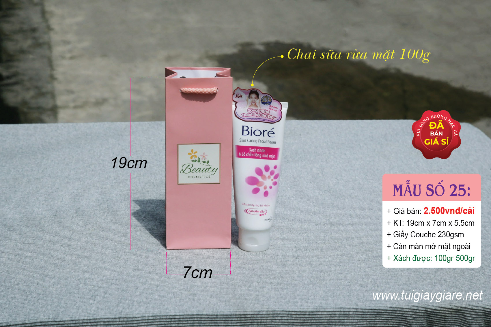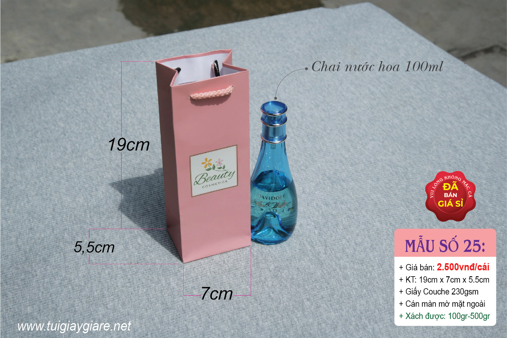 Túi giấy đựng chai Mỹ phẩm, nước hoa, tinh dầu, Mắt kính, Son môi nước, típ sữa rửa mặt … Cosmetics paper bag