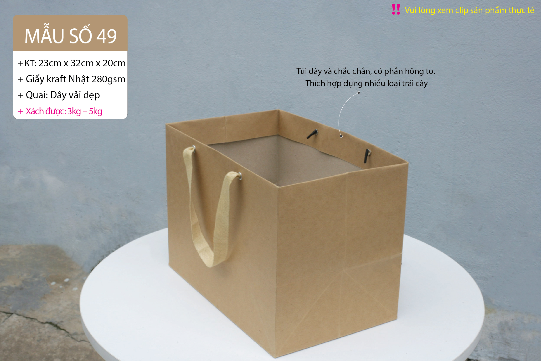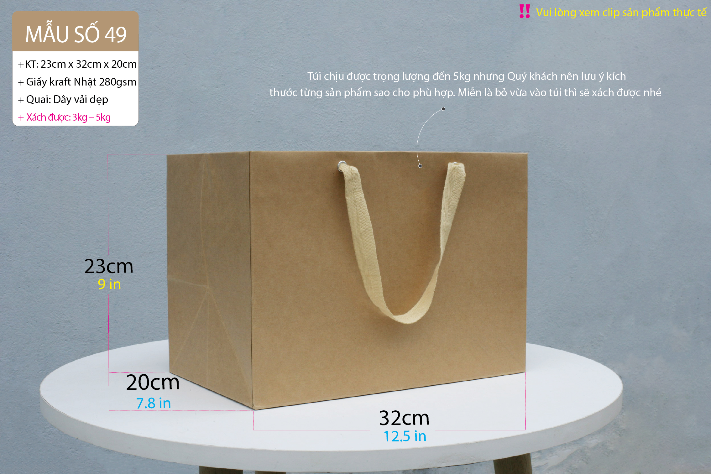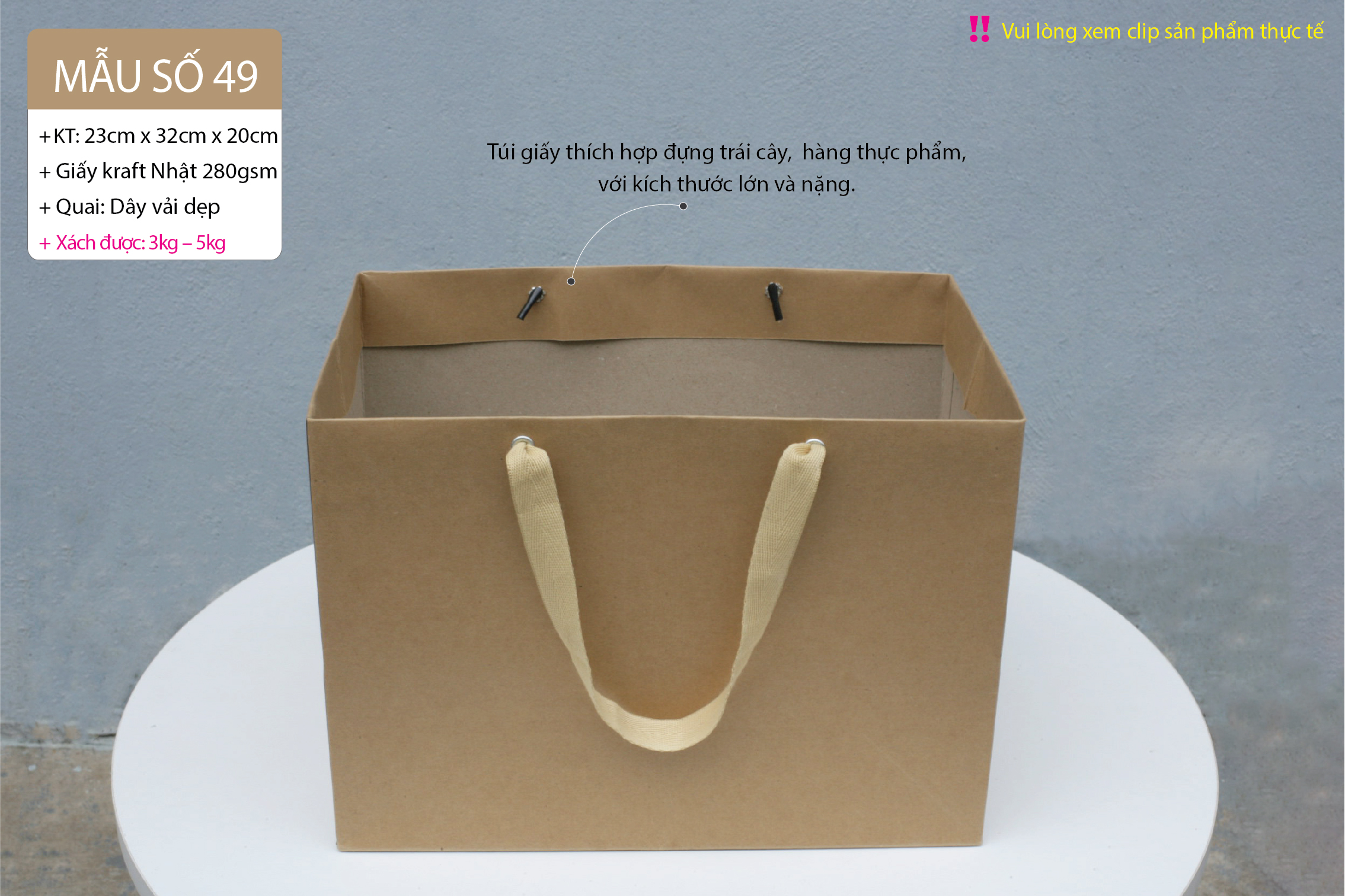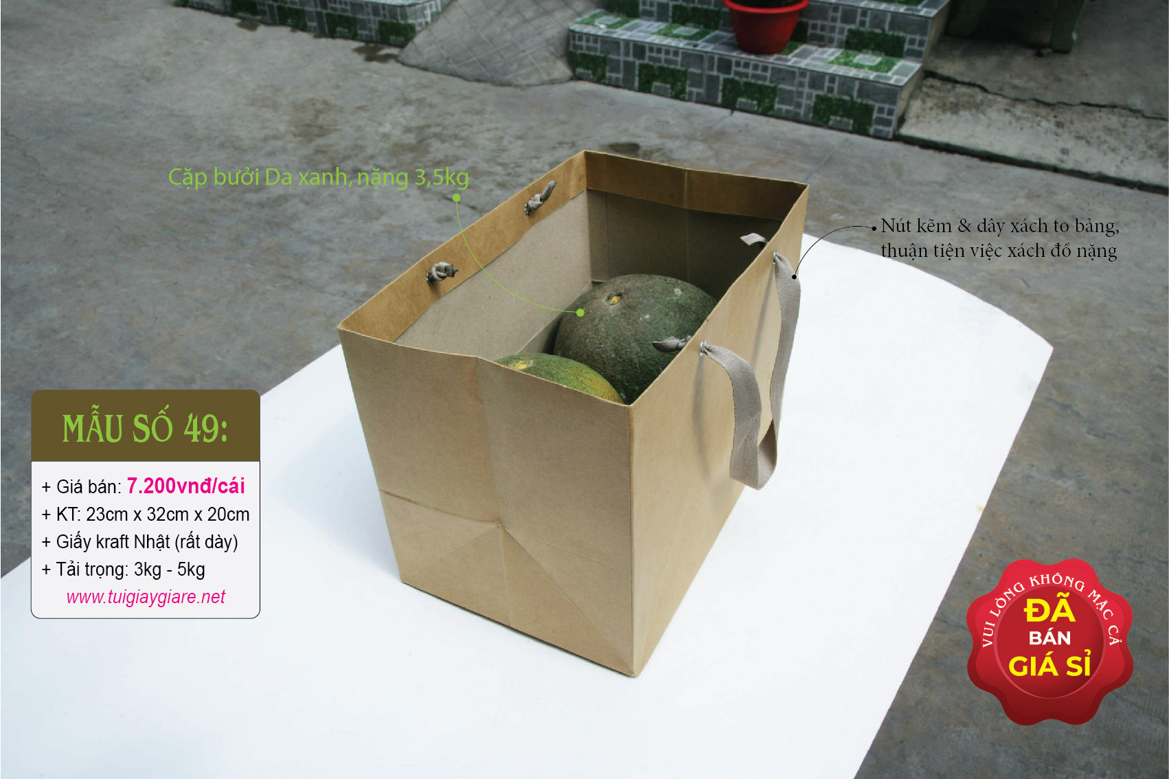 Túi giấy thích hợp đựng trái cây, hàng thực phẩm, với kích thước lớn và nặng.