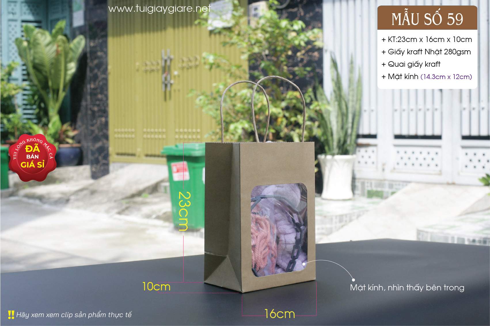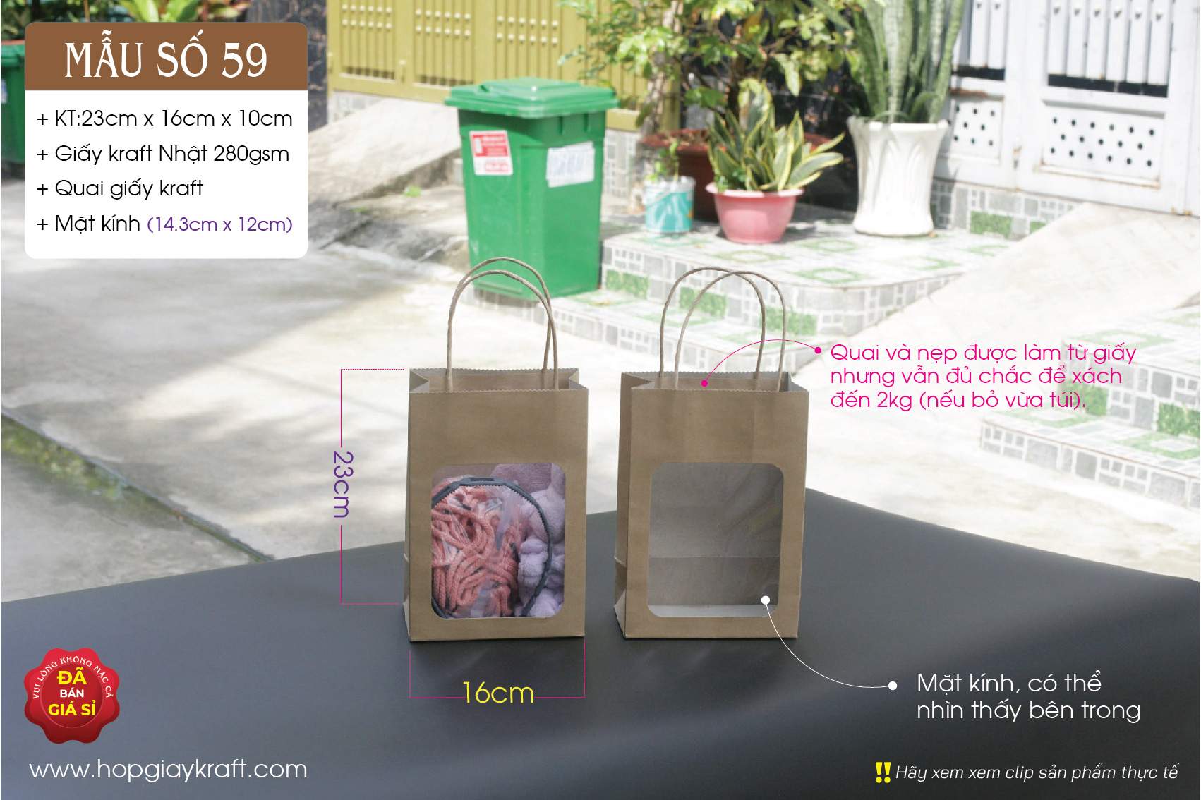 Túi giấy cửa sổ mặt kính – Kích thước A5 – Đựng yến chưng sẵn, quà lưu niệm, mỹ phẩm – paper bags with handle