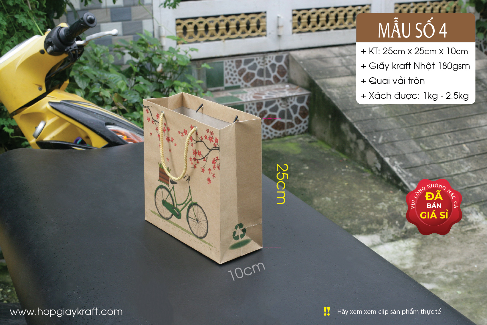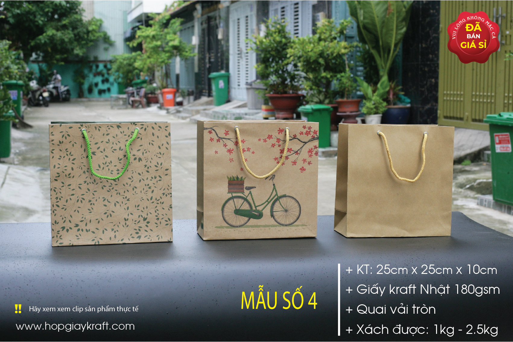 (Túi giấy kraft mẫu số 4, loại có in hoa văn)
